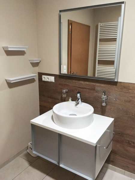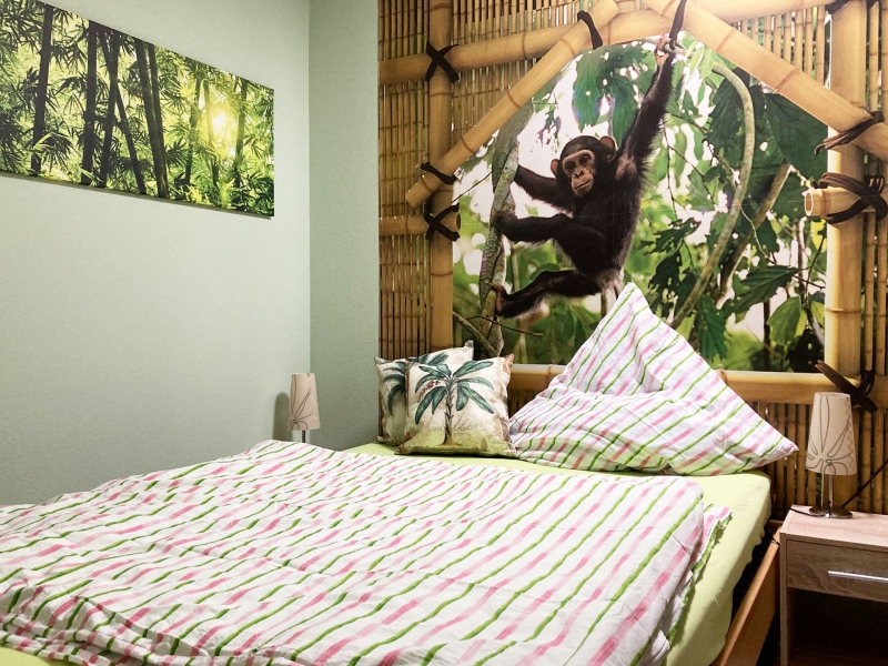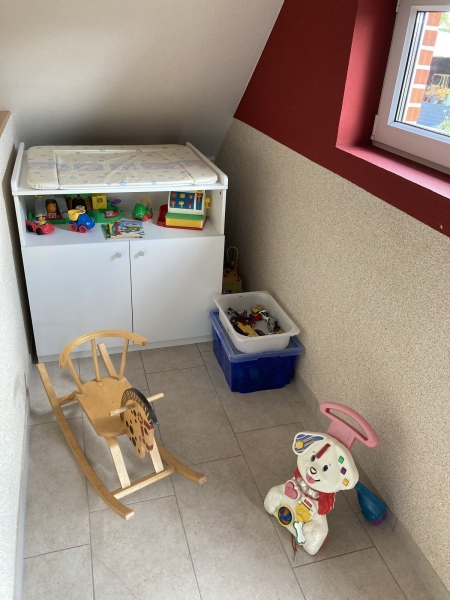 - 1 Schlafzimmer mit einem Kingsize-Bett (140 cm breit) für ggf. 2 Erwachsene und einem Kinderbett 40/130 cm,
