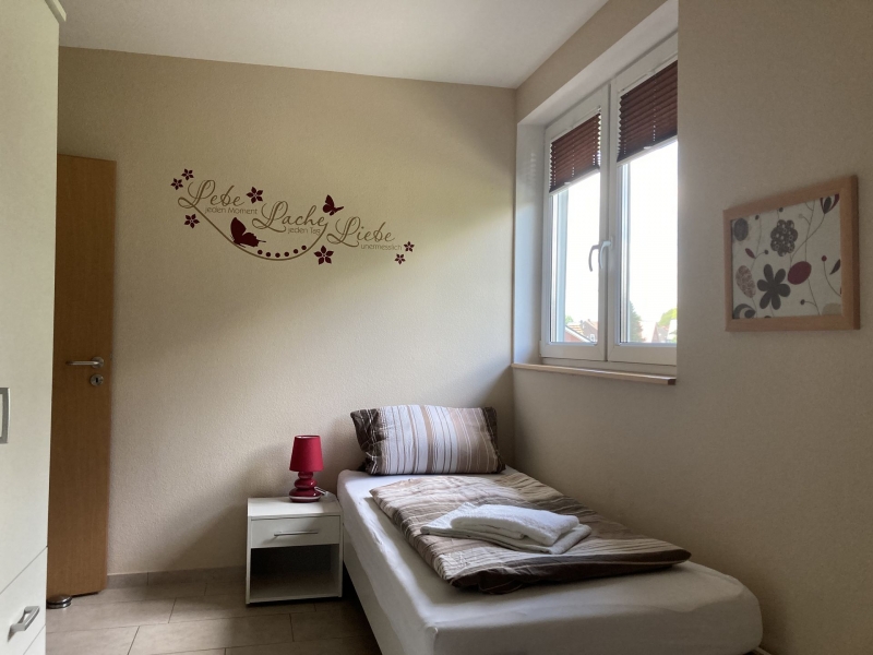 - 1 Schlafzimmer mit zwei getrennten Betten der Größe 90/200 cm.